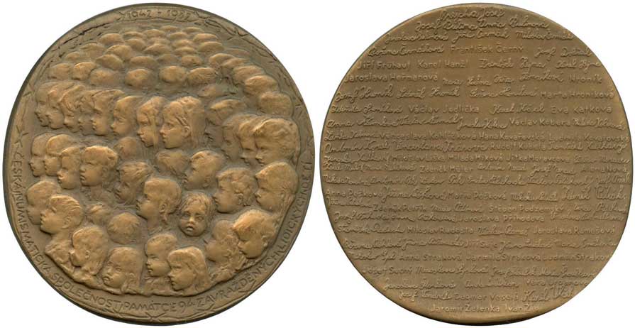 | 1252. | Uchytilová M., 1982. – Lidice. – Hlavičky dětí ve věnci z ostnatého drátu 1942–1982 / 94 jmen zavražděných dětí. – Bronz, 78x78 mm, BK-1/21. | 0/0 | 260,- | 380,- |