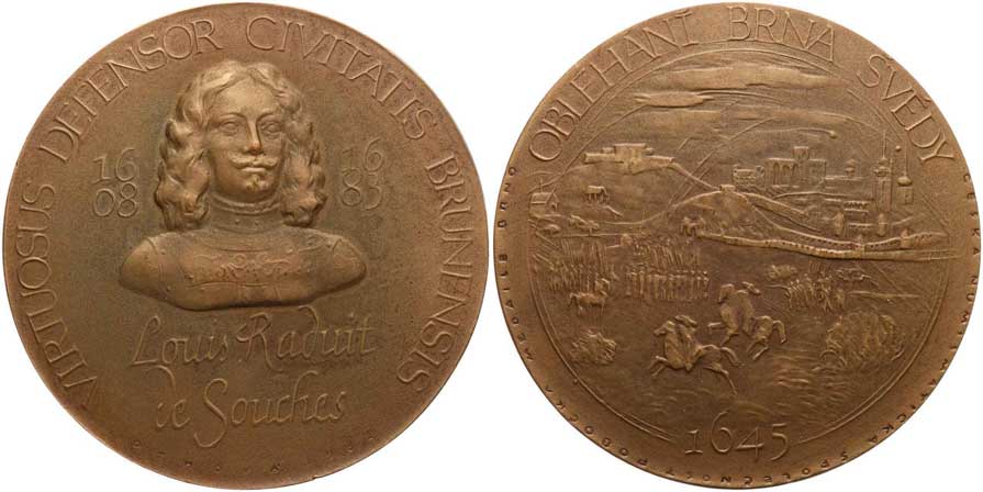 | 1271. | Othová M., 1983. – Louis Raduit de Souches. – Poprsí čelně, vročení 1608–1683 / scéna obléhání Brna Švédy v roce 1645. – Bronz, 70 mm, BK-6/10. | 0/0 | 200,- | 750,- |