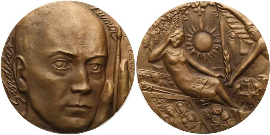 | 1272. | Šindelář L., 1985. – Autoportrét čelně / sedící Múza s otevřenou knihou. Bronz, 60 mm, BK-6/11. | 0/0 | 140,- | 1300,- |