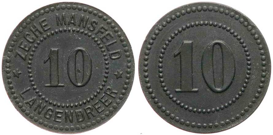 | 935. | Zeche Mansfeld „10“. – Zn, 23,0 mm, M-14277.2. | 0/0 | 360,- | --.- |
