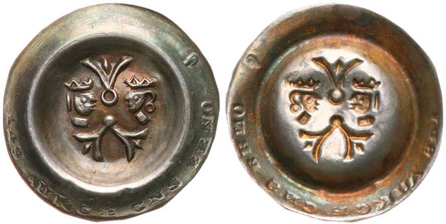 | 1274. | 164. aukce. – Žeton dle početního peníze Petra Voka z Rožmberka a Kateřiny z Ludanic. – Cu klipa, signováno /J. Jelínek/, raženo 36 ks, RS-38d. | 0/0 | 300,- | 650,- |