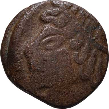 podobný jako S.3474, RIC.638 - mincovna Rotomagus - blíže nedatován, oválný střížek, nedor., patina R! |