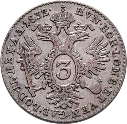 | 1809. | 3 Krejcar 1832 A, Vídeň, 1.622g, nep.hr., nep.rysky,
