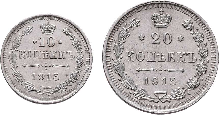 | 2307. | 20 Kopějek 1915, 10 Kopějek 1915, obě VS,
