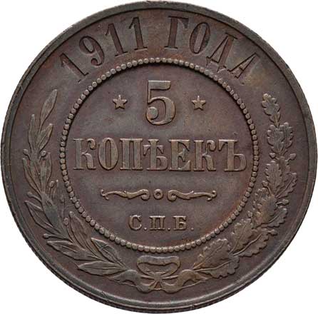 | 2308. | 5 Kopějka 1911 SPB, Petrohrad, Y.12.2 (Cu), 16.458g,