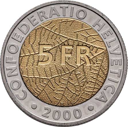 | 2382. | 5 Frank 2000 - 150 let výcarské měny, KM.91