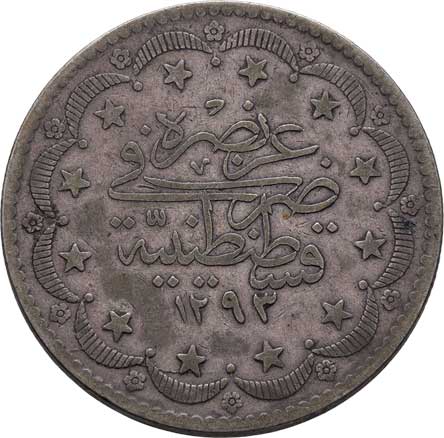 | 2391. | 20 Piastr AH.1293, rok vlády 1 (= 1876), KM.722,