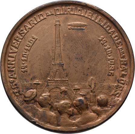 úspěšného letu v Paříži 1901/1936 - poprsí zleva, písmo, vzducholoď u Eiffelovky, Sign.HP, bronz 40 mm |