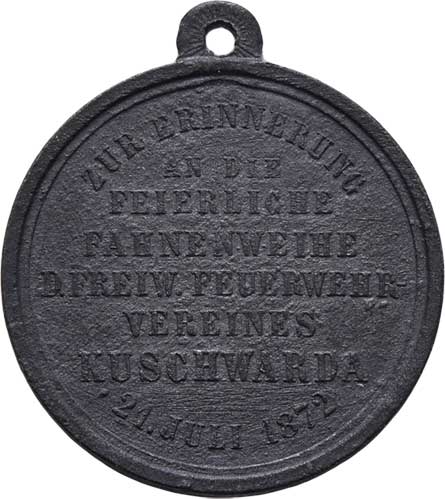 opis / 12-řádkový maďarsko-německý nápis, Nesign., M-B.77, bronz 29 mm s raženým ouškem, nep.hr., patina |