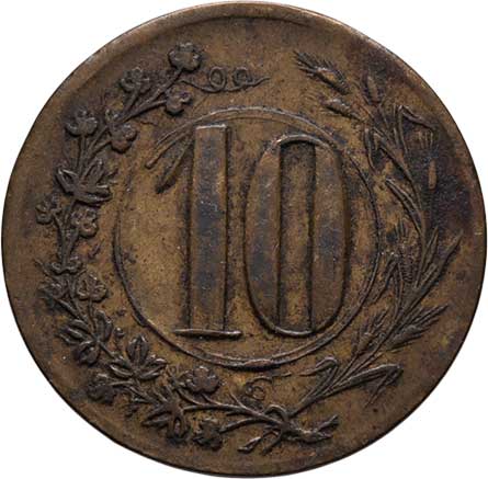 1869 - 1940, nákupní známka v hodnotě 10 Ks (bez ozn. nominálu), mědinikl 25 mm, 5.400g, krásná patina |