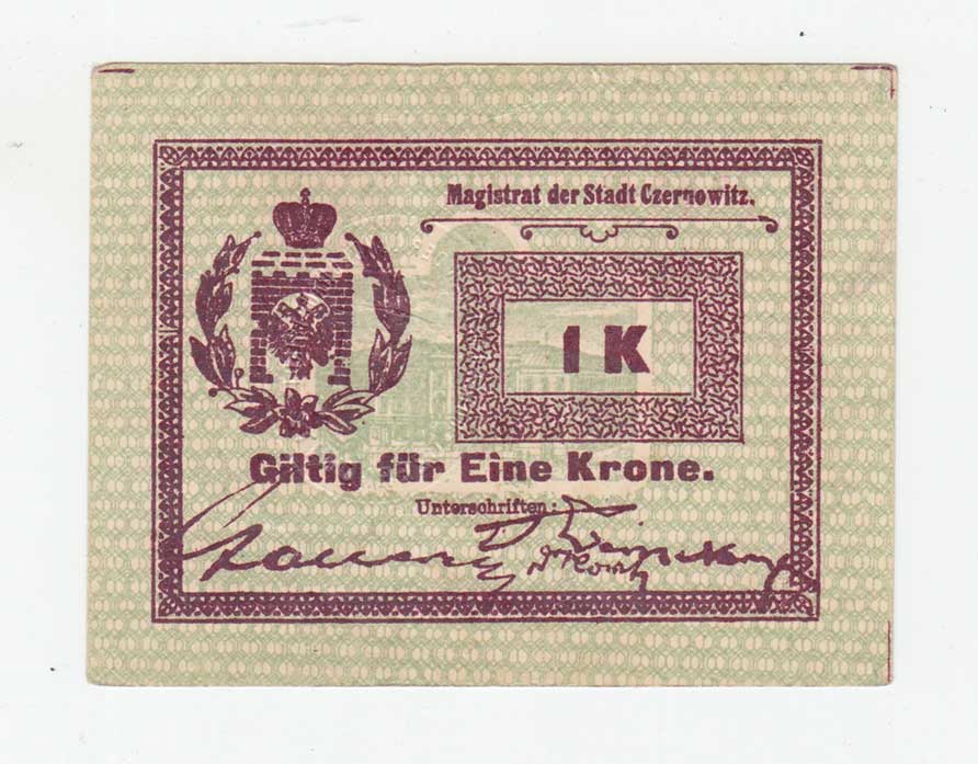 | 3524. | Czernowitz, Magistrat - 1 Koruna b.l. (patrně do