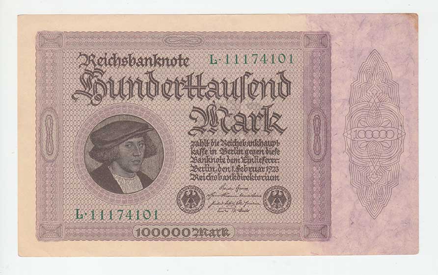 | 3556. | 100 Mio Marek 22.8.1923, Pick.107a, Ros.106a - sér.G,