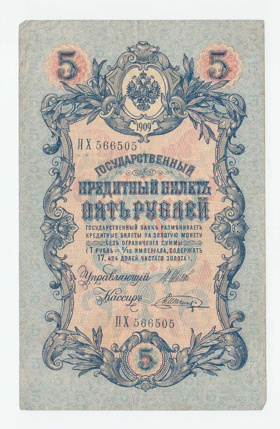 | 3643. | 5 Rublů 1909, Pick.10a - sign. Konšin / Ovčinikov | 3 | 30,- | 32,- |