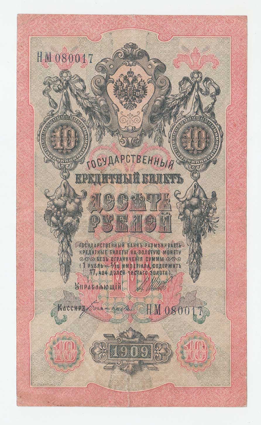| 3651. | 10 Rublů 1909, Pick.11c - sign. Šipov / Ivanov,
