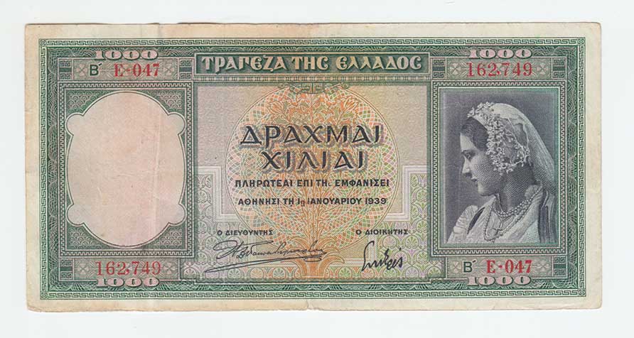 | 3694. | 1000 Drachem 1939, Pick.110a | 3 | 30,- | 34,- |