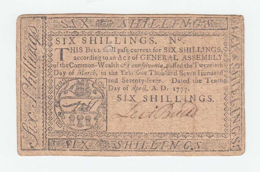 | 3722. | Six Shillings 10.4.1777, Pick.S2585 | 3 | 700,- | 1600,- |