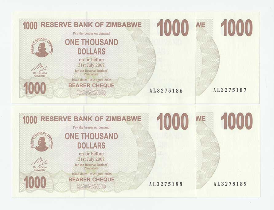 | 3740. | 1000 Dollars 1.8.2006, Pick.44, čtyři následující