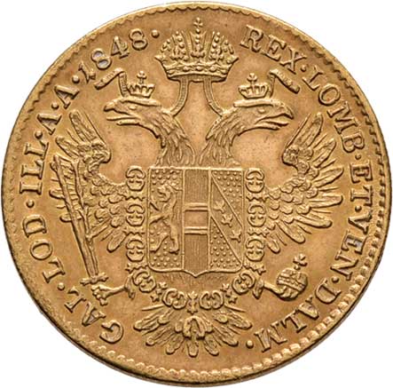 | 23. | Dukát 1848 E, Karlovský Bělehrad, 3.489g, nep.hr.,