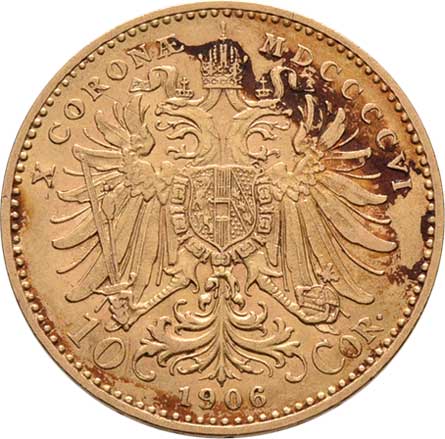 | 72. | 10 Koruna 1906, 3.372g, nep.hr., nep.rysky, skvrny,