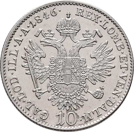 | 601. | 10 Krejcar 1846 A, Vídeň, 3.893g, nep.rysky, nep.vada