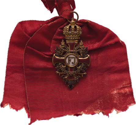 Sign.VM (Vincenc Mayer-Wien), původní stuha, věnování "DAS OFFIZIERSKORPS DES K.K.IV/9 LD.ST.BAONS..", etue |