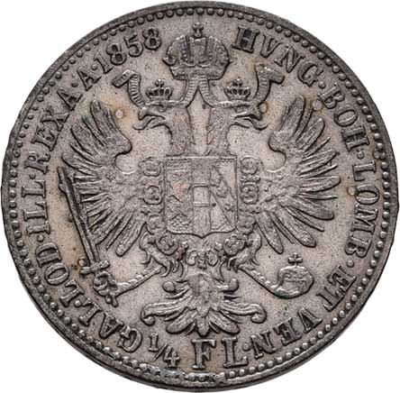 | 2070. | 1/4 Zlatník 1858 A - 1.typ (menší označení nominálu),