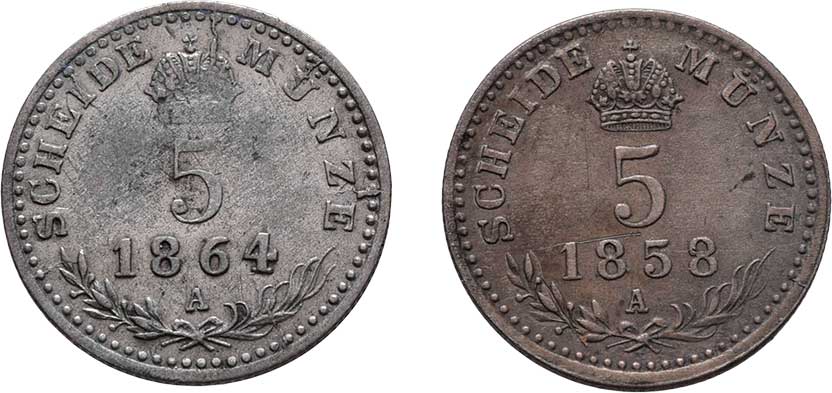 | 2135. | 5/10 Krejcaru 1859 A, 1858 B, 1.719g, 1.515g,