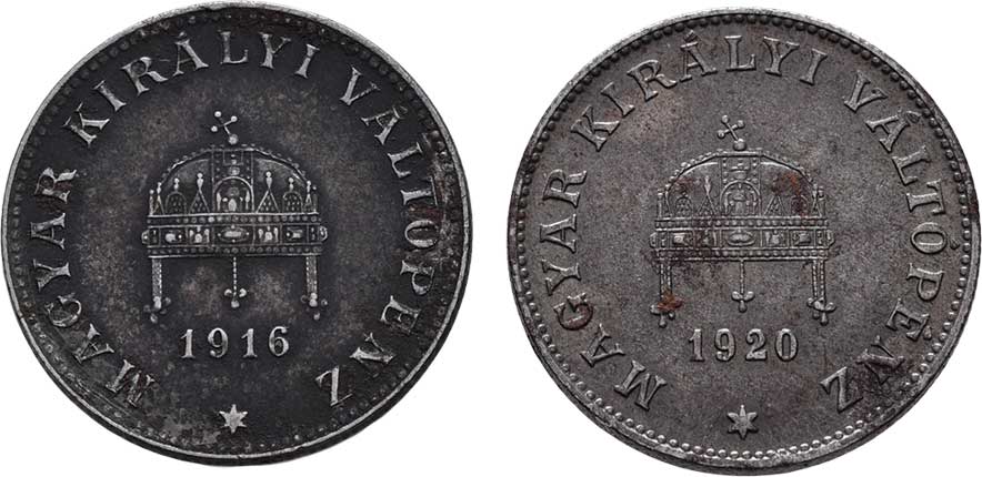 | 2200. | 20 Haléř 1916 KB (Fe), 1920 KB (Fe), 3.329g, 3.424g,