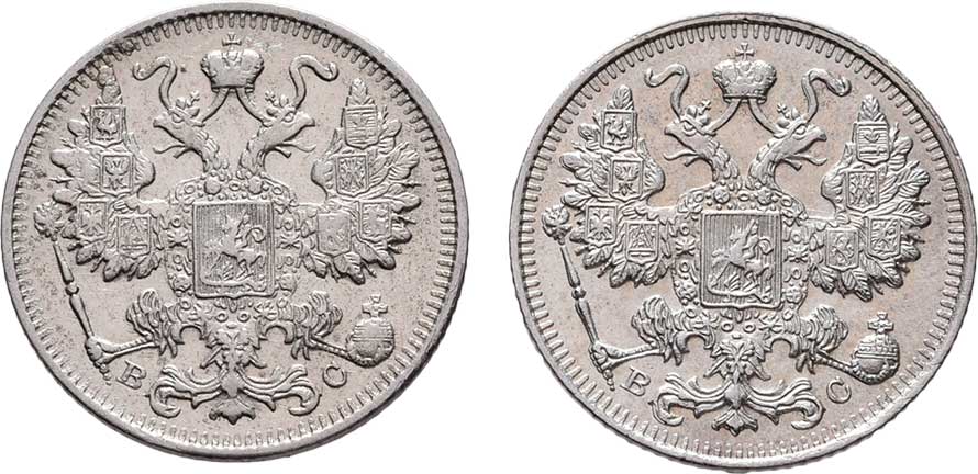 | 2513. | Konvolut mincí: 2x 20 Kopějka, 5x 15 Kopšjka, 2x 10