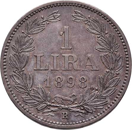 | 2528. | Lira 1898 R, KM.4 (raženo pouze 20.000 ks), 4.990g,