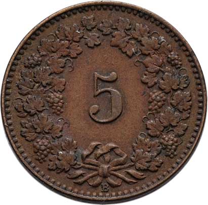 | 2580. | 5 Rap 1874 B, Bern, KM.5 (bilon), 1.627g, nep.hr.,