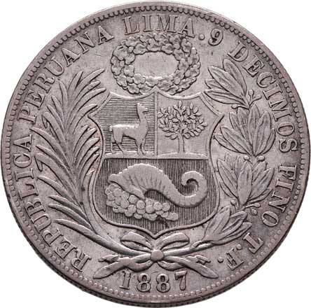| 2676. | Sol 1887 TF, Lima, KM.196.22 (Ag900), 24.875g,