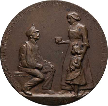 na stuze letopočet 1918, opis, Sign., jednostranný patinovaný bronz 60mm, 69.206g, Kr.18, původní karton |