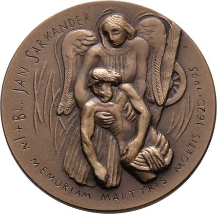 - poprsí zprava, nápisy / osmiřádkový nápis, Sign., lakovaný patinovaný zinek 60x72 mm |