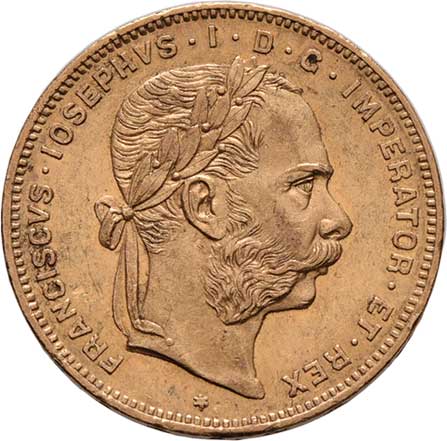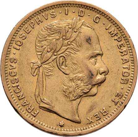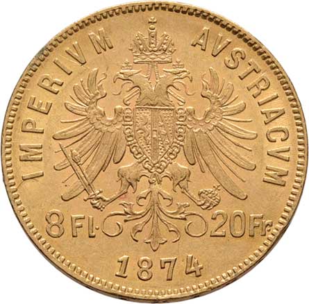 | 61. | 8 Zlatník 1874 (pouze 42.000 ks), 6.425g, nep.hr.,