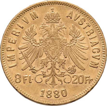 | 64. | 8 Zlatník 1880 (pouze 62.000 ks), 6.436g, dr.hr.,