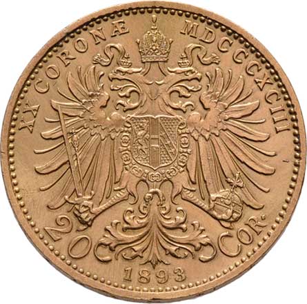 | 70. | 20 Koruna 1893, 6.753g, nep.hr., nep.rysky, pěkná