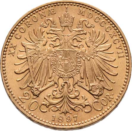 | 78. | 20 Koruna 1897 KB, 6.771g, dr.hr., nep.rysky, pěkná