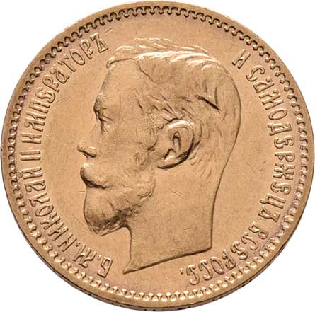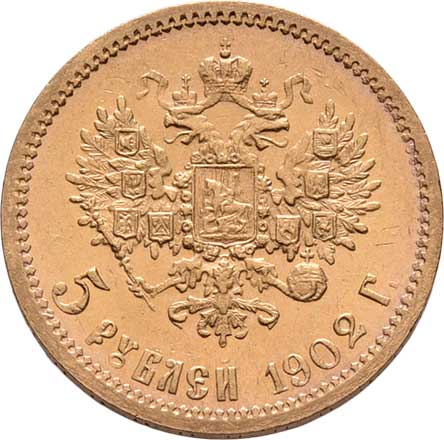 | 212. | 5 Rubl 1901 FZ, Petrohrad, Y.62 (Au900), 4.275g,