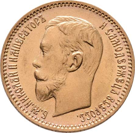 | 211. | 5 Rubl 1900 FZ, Petrohrad, Y.62 (Au900), 4.288g,