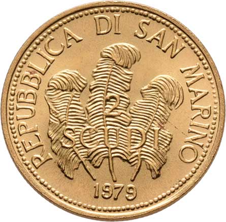 | 226. | 2 Scudi 1979 - Mír, KM.100 (Au917, pouze 37.000 ks),