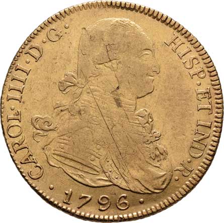 | 278. | 8 Escudos 1796 PTS-PP, Fr.14, KM.81 (Au875), 26.919g,