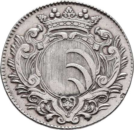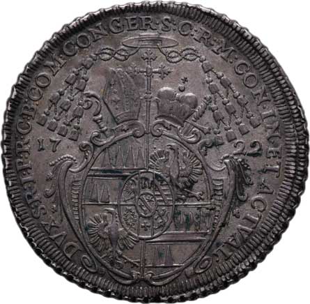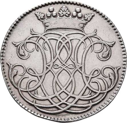 v ozdobné kartuši, Ag 31mm, 9.551g, PR.54, Don.3502, BPM.184, na hraně nep.stopy po zasazení, nep.rysky R! |