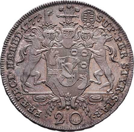| 624. | 20 Krejcar 1778, Poprsí zprava, opis / korunov. znak