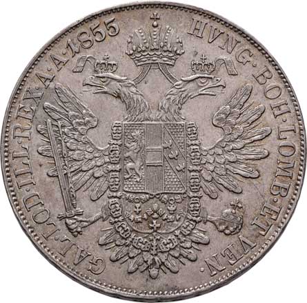 | 761. | Tolar 1855 A - hlava zprava, 25.954g, nep.hr.,