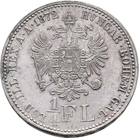 | 792. | 1/4 Zlatník 1872, 5.306g, nep.hr., nep.rysky, pěkná