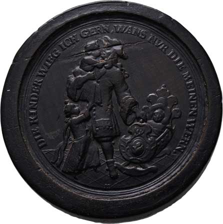- dvě alegorické postavy, pohled na město, nápis, Sign., patinovaný bronz 58x72 mm, škr., skvrnky |