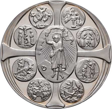 - Betlém a 6-řádkový nápis/ velký kříž a devět výjevů z evangelia, Sign., Ag925, 70mm, 152.203g, 50ks, etue |