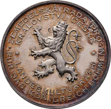 český lev s praporcem / lipová a dubová ratolest, český a něm. nápis, Sign., 43mm, 30.612g, ŠFP.17(f) |