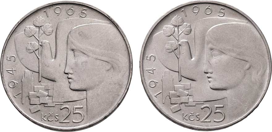| 1670. | 25 Koruna 1965 - Osvobození - 2 varianty (různý směr